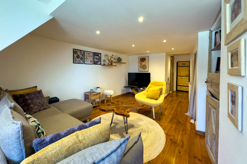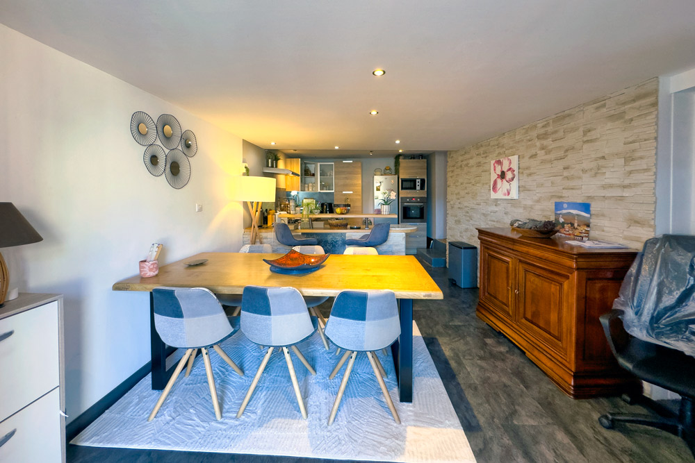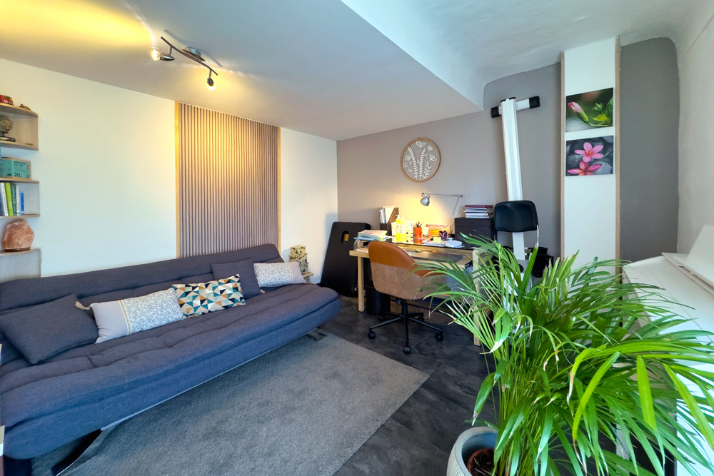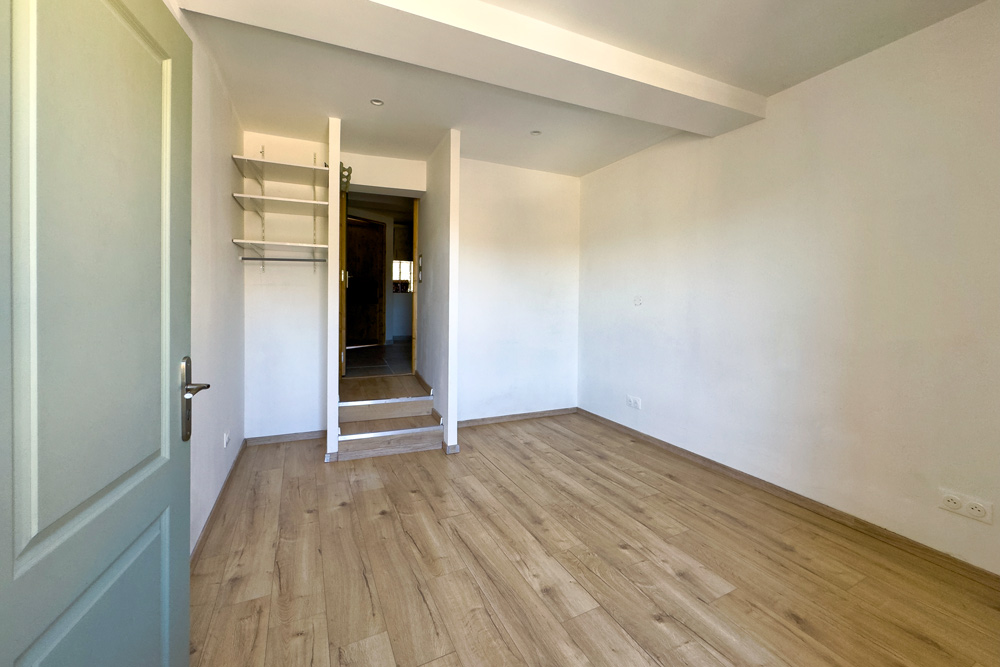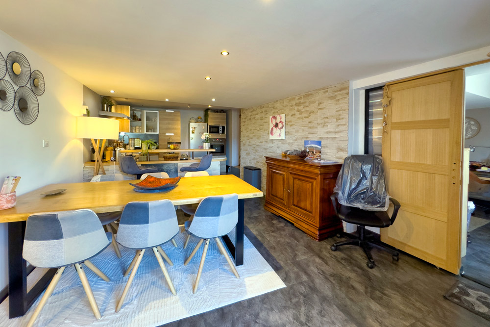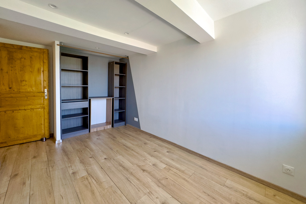 – 105 m² five-room duplex (vacant) – A family home or rental property with great potential – The ground floor features a beautiful fitted kitchen opening onto a cosy living room with a wood-burning stove, leading onto a 32 m² terrace with a BBQ and outdoor seating area, a bedroom (or study) and a bathroom with WC. The upper floor is dedicated to the sleeping area with 3 further bedrooms and a bathroom with WC.