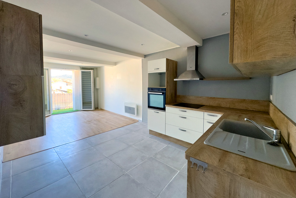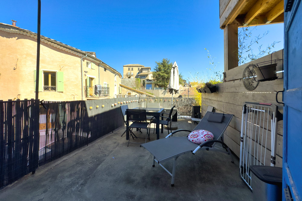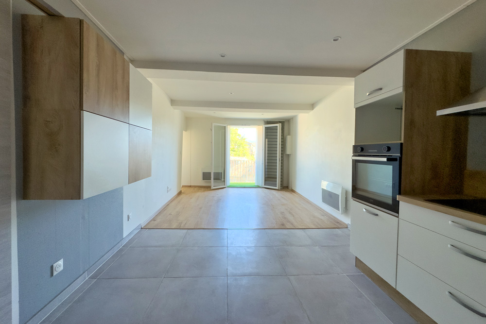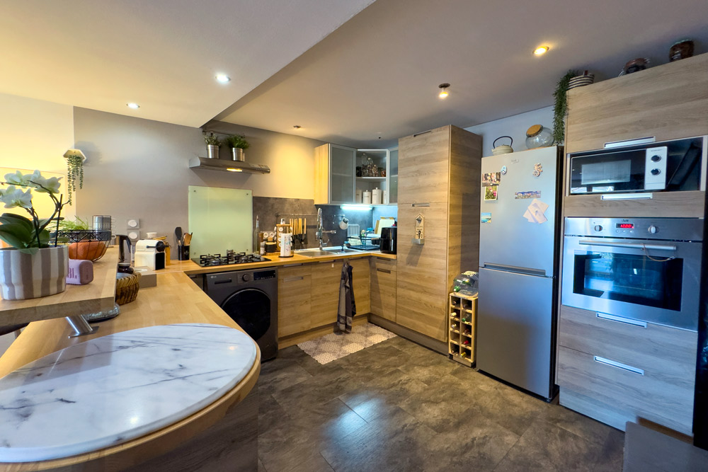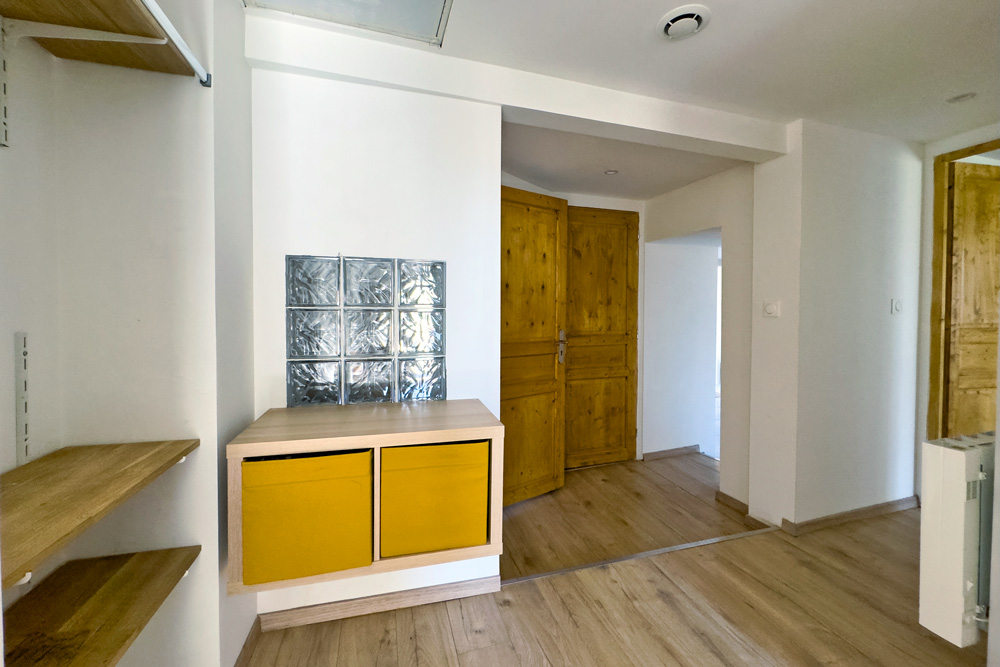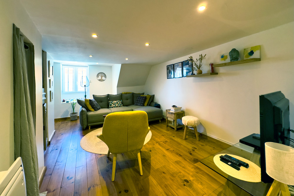 – 105 m² five-room duplex (vacant) – A family home or rental property with great potential – The ground floor features a beautiful fitted kitchen opening onto a cosy living room with a wood-burning stove, leading onto a 32 m² terrace with a BBQ and outdoor seating area, a bedroom (or study) and a bathroom with WC. The upper floor is dedicated to the sleeping area with 3 further bedrooms and a bathroom with WC.
